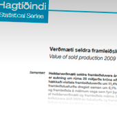Heildarverðmæti seldra framleiðsluvara árið 2009 var 574 milljarðar króna sem er aukning um rúma 28 milljarða króna eða 5,3% frá árinu 2008. Á sama tíma hækkaði vísitala framleiðsluverðs um 11,4% og hefur því heildarverðmæti seldra framleiðsluafurða dregist saman um 6,1% að raungildi. Framleiðsla fiskafurða og framleiðsla á málmum vega sem fyrr þyngst.